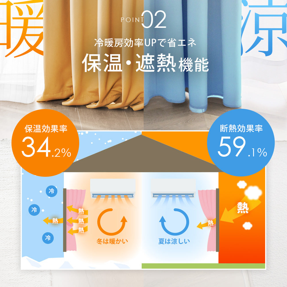 【99.9% 1級遮光】光沢を抑えたマットな質感、UVカットで人もペットも安心!省エネ効果も抜群。フック装着済みで届いてすぐ使えます。